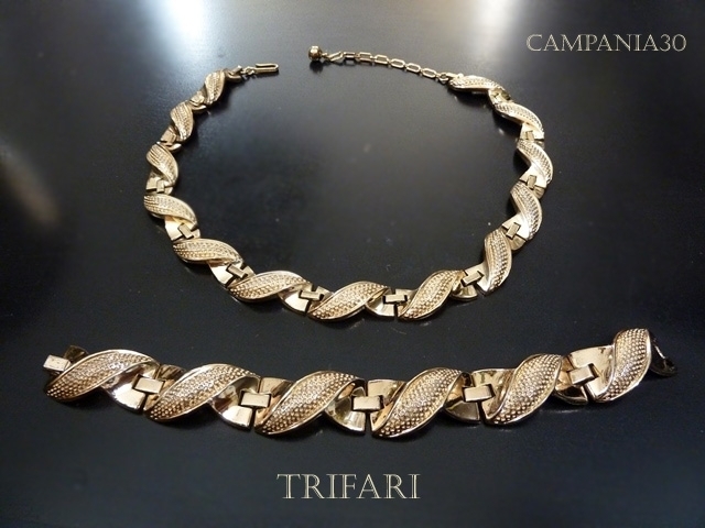 Originale parure in metallo dorato realizzata da Trifari negli anni '50. In perfette condizioni.